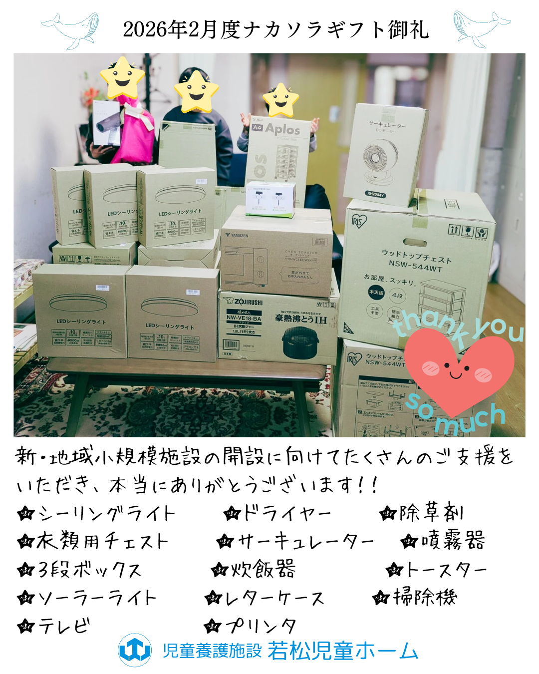 いつも若松児童ホームの子どもたちを応援していただき心より感謝申し上げます!今後ともよろしくお願いいたします♪