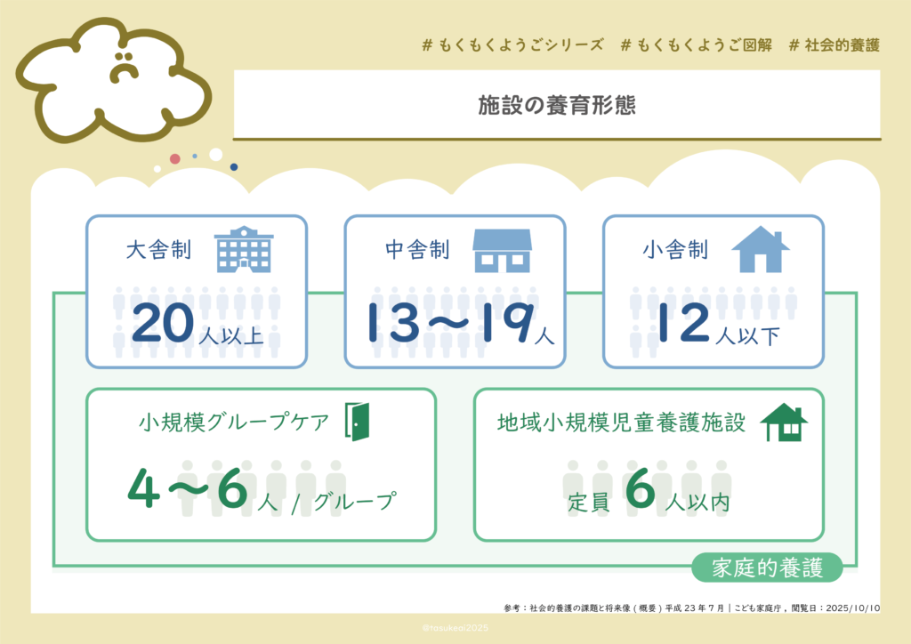 何れにせよ、児童養護施設というのは、苗字のちがう子同士が一緒に集団生活をする「学生寮」だと考えていただけるとわかりやすいかと思います。
