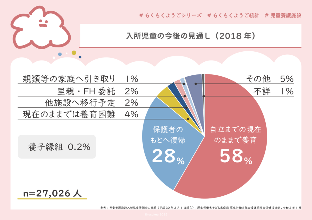 でも現実には、家庭に戻らず、自立するまで施設で過ごす子も多く、約半数を超えているというデータもあります。「家庭への復帰」が制度上の理念としてあっても、それが難しい状況もあるんですよね。